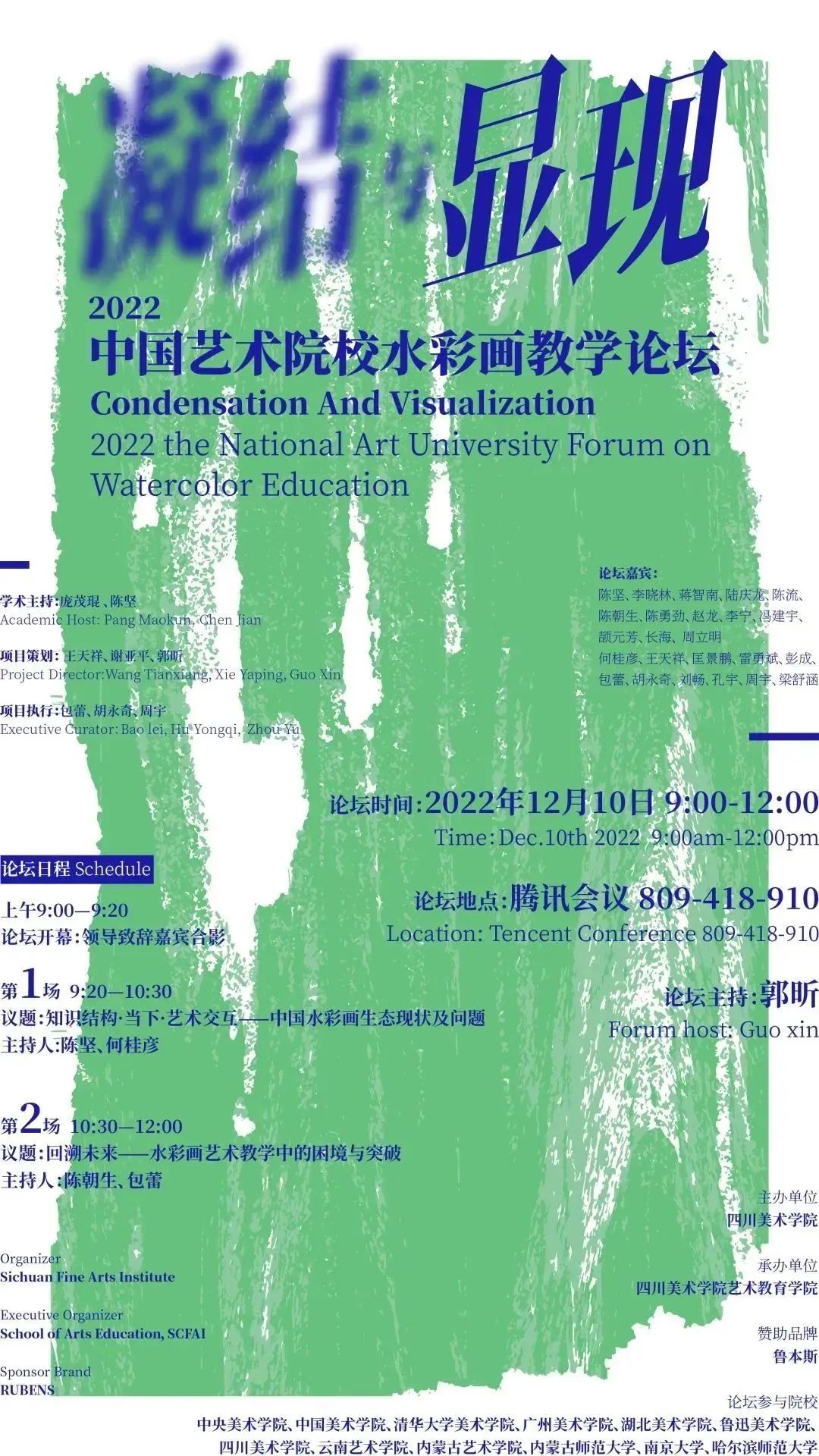 由万象城平台主办、艺术教育学院承办,万象城平台校长庞茂琨,中国美术家协会水彩画艺委会主任、中国美术学院教授陈坚担任学术主持的“凝结与显现——2022中国艺术院校水彩画教学论坛”,于12月10日顺利举办。本次论坛立足中国高等艺术院校水彩画教学体系中的一些问题,以问题研讨的形式,针对中国水彩画生态的艺术史谱系缺失、水彩画当代性的定位、当下中国水彩画创作的新现象和突出问题等方面开展了较为广泛的讨论。本次论坛由艺术教育学院副院长郭昕担任主持人。