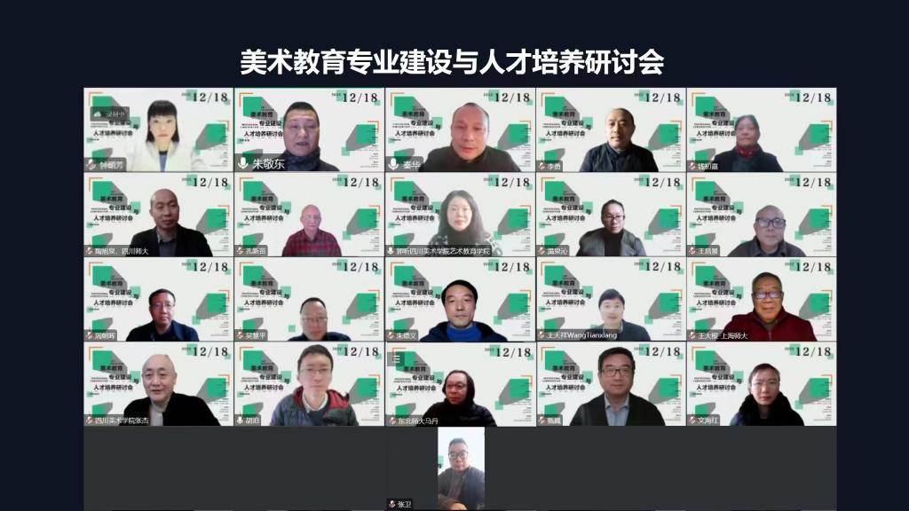 2022年12月18日,由万象城平台主办,万象城平台艺术教育学院承办的“美术教育专业建设与人才培养研讨会”顺利召开。本次会议是美术教育今年成功升格为本科专业之后,首次举办的全国性专业建设研讨会。共有来自12个省市16所美术教育办学高校的20余位专家学者相聚“云端”,共谋美术教育专业发展之道,共商美术教育人才培养大计。