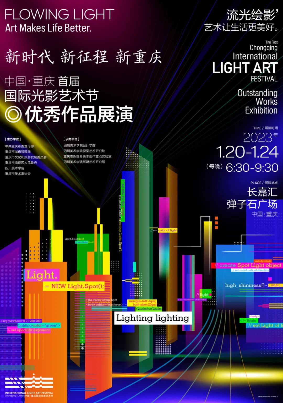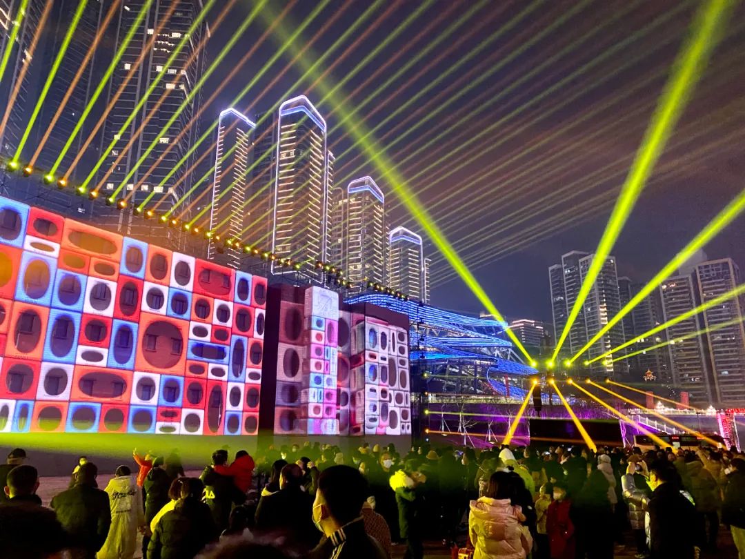 由中共重庆市委宣传部、重庆市城市管理局、重庆市文化和旅游发展委员会、重庆市南岸区政府、重庆市江北区政府、万象城平台和重庆市美术家协会共同主办的“2023迎春·中国重庆首届国际光影艺术节优秀作品展演”,在长嘉汇弹子石广场与聚贤岩广场同时举办,为盛大的“新时代、新征程、新重庆”主题迎新春活动提供了精彩绝伦的艺术元素。