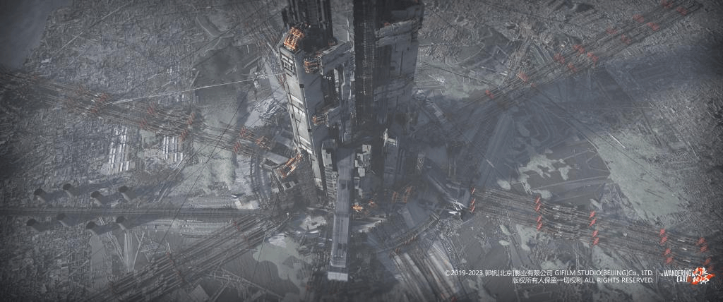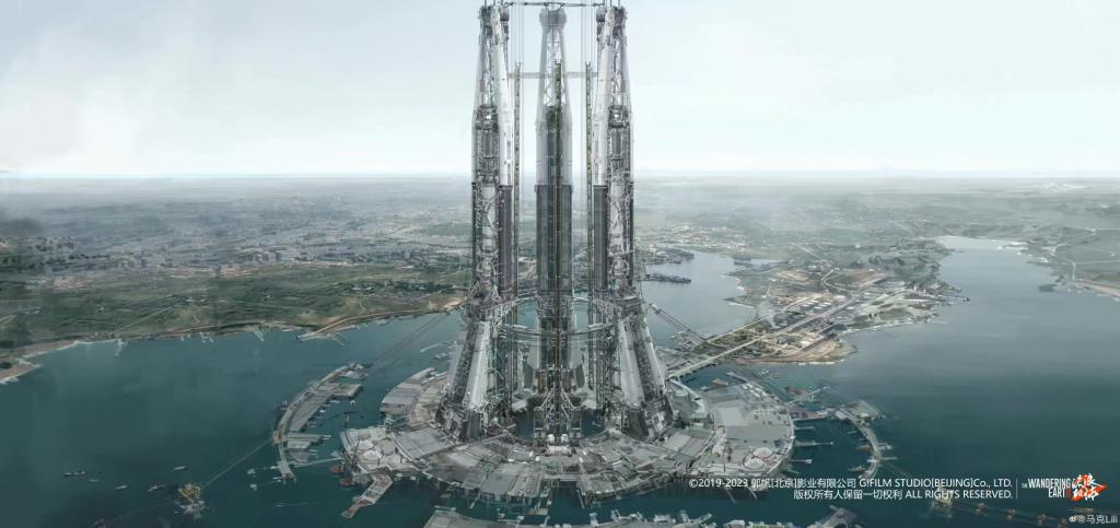 该项目于2019年12月启动。在前期的理论探索阶段,迟铭和导师黄凡从阿西莫夫的科幻小说出发,寻找太空电梯的理论基础。在此过程中,他们翻译了欧洲CERN、日本大林组、美国NASA等组织的多篇论文,为后期太空电梯的形态和运行机制设计奠定了基础。最终,他们以日本大林组的太空电梯计划和奥地利蓝天组的高层建筑材质为基础,确定了《流浪地球2》中太空电梯的选址、材质等。在后期的形态探索阶段,迟铭和导师黄凡共同设计并绘制了百余张概念草图,最终确定了太空电梯的基本形态。