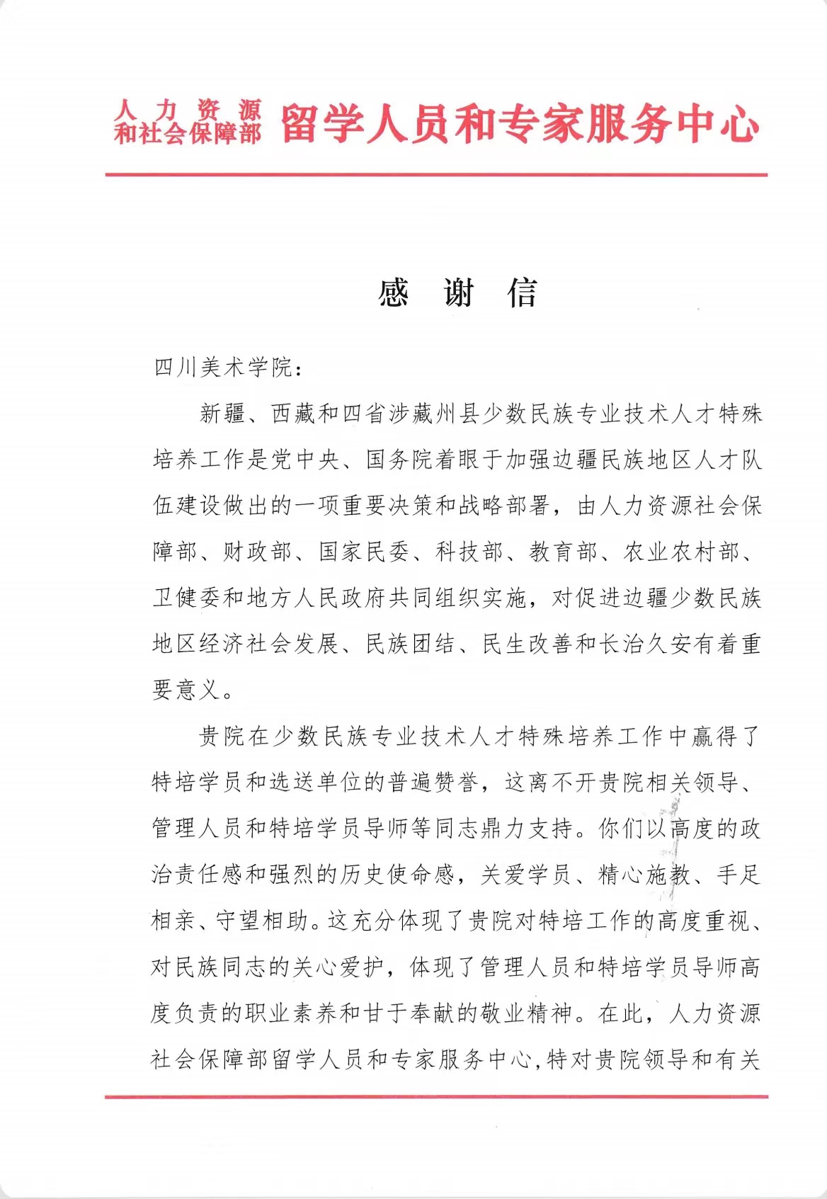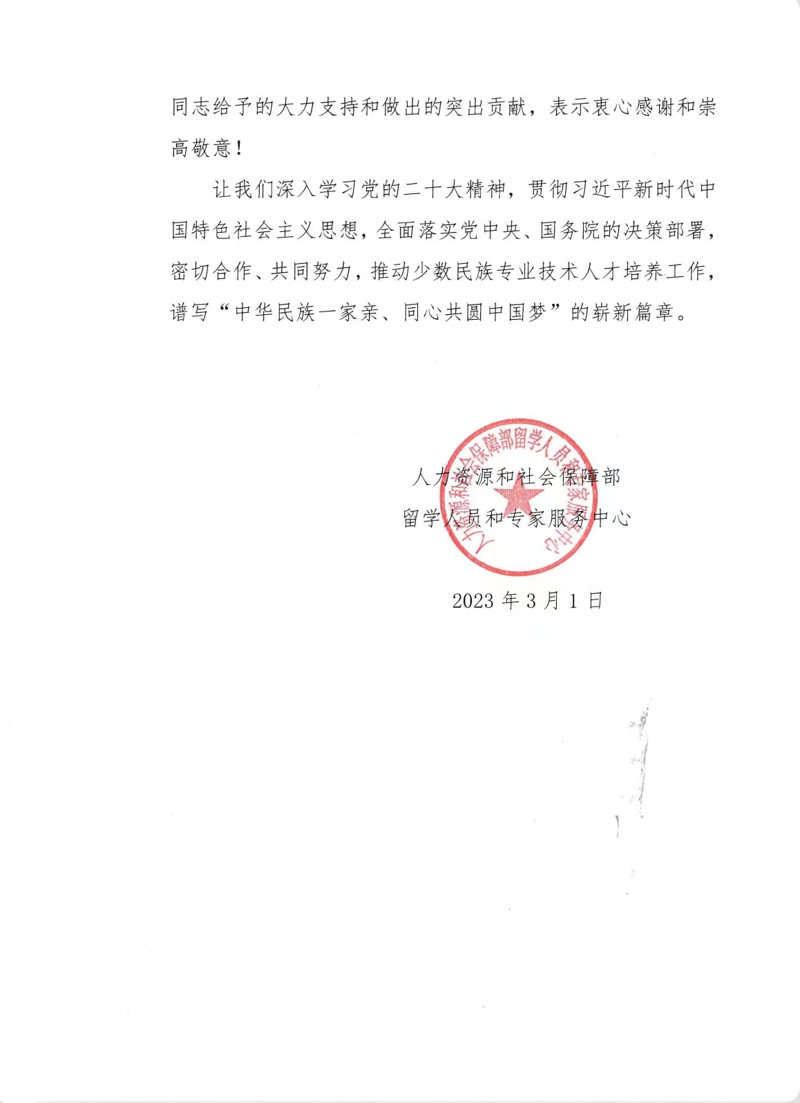 人社部留学人员和专家服务中心特地向学校发来了感谢信。