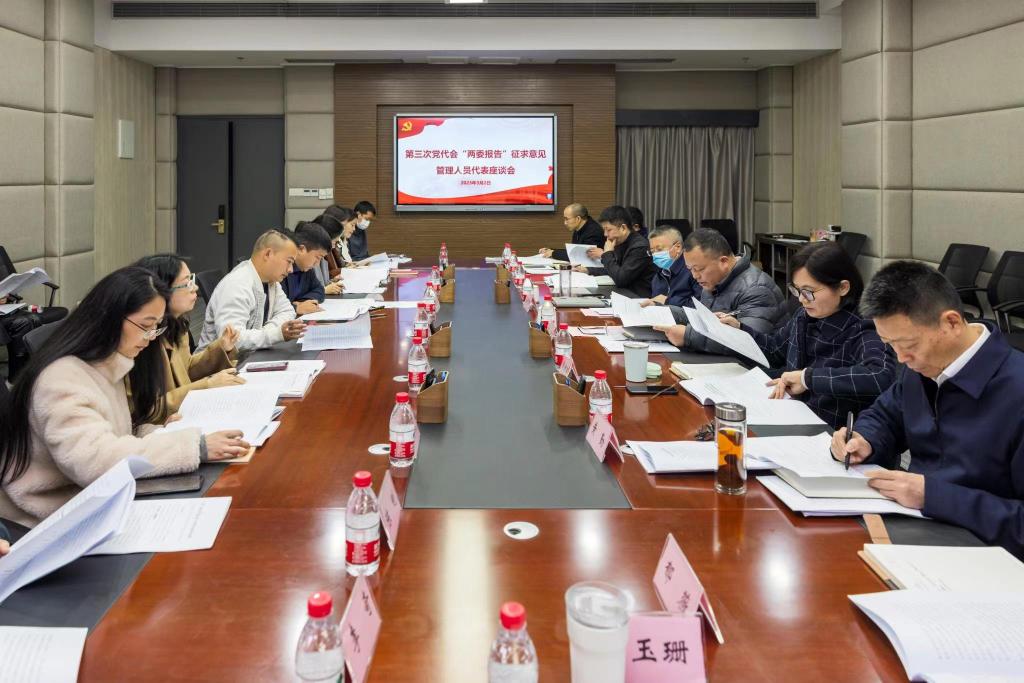 3月2日、3月3日,学校分别举行了第三次党代会“两委报告”管理人员代表、离退休老同志代表、统一战线人员代表、师生代表共计四场征求意见座谈会。党委书记唐青阳主持座谈会,党委副书记左益、纪委书记黄云出席会议。