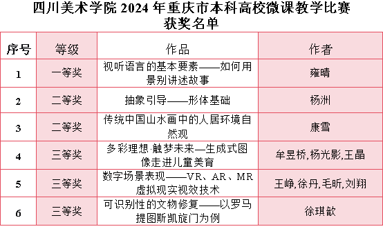 近日,重庆市教育委员会公布了2024年本科高校微课教学比赛获奖名单,我校获得一等奖1个、二等奖2个、三等奖3个。