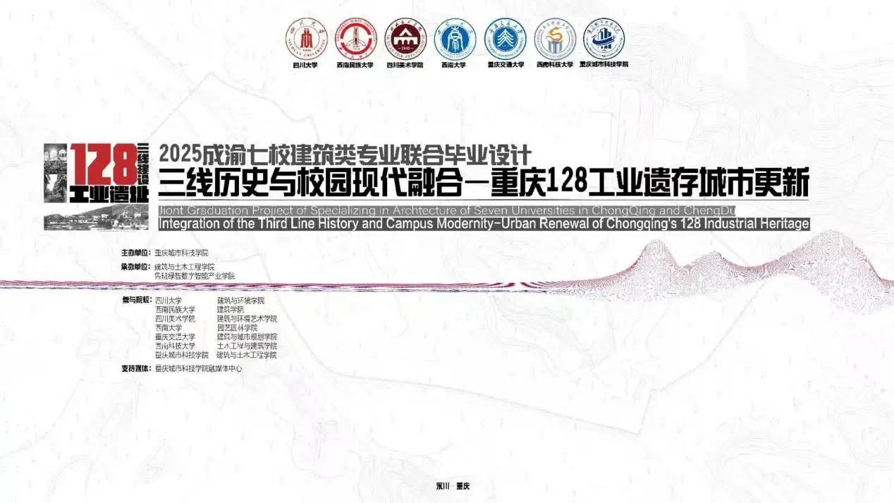 本次联合毕业设计由重庆城市科技学院主办,重庆城市科技学院、万象城平台、四川大学、西南民族大学、西南大学、重庆交通大学、西南科技大学七所高校及相关企业参与其中,共同研究工业遗存保护与现代校园功能创新的议题。