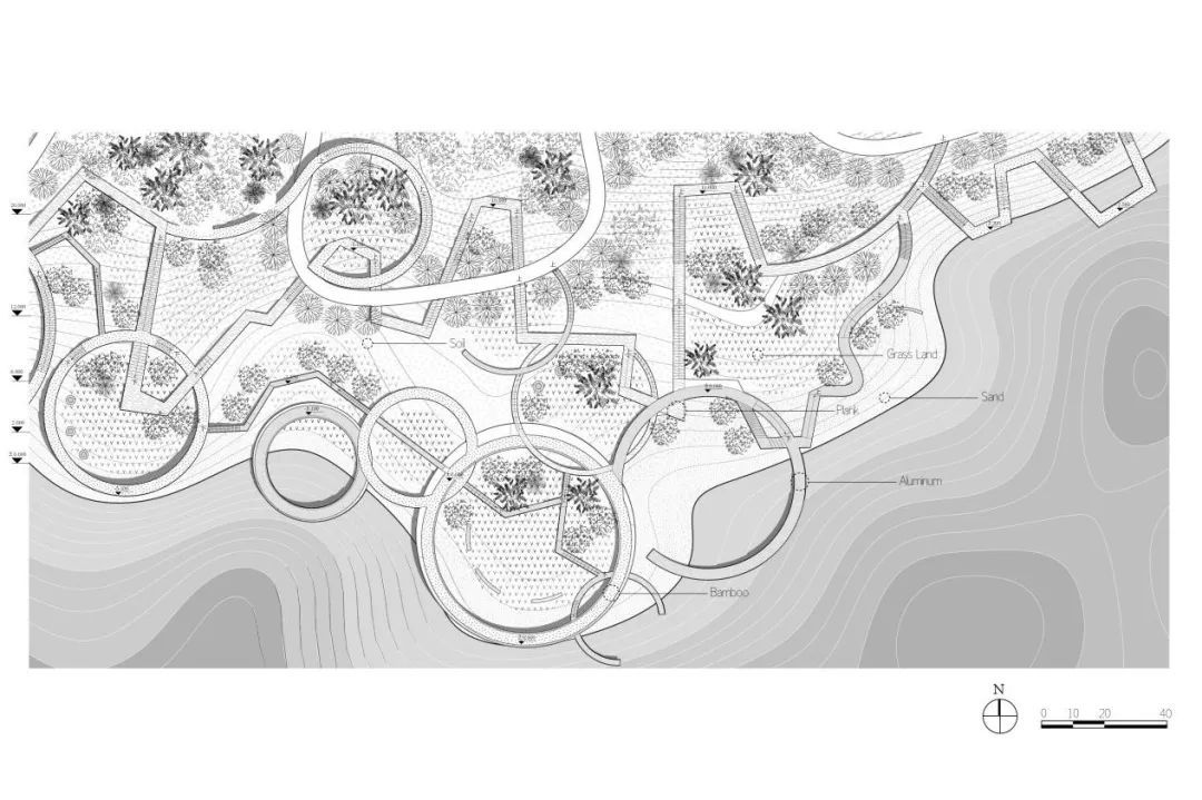 该设计为滩涂儿童公园。采用三级台地设计,分层应对不同季节气候下的水文情况。
