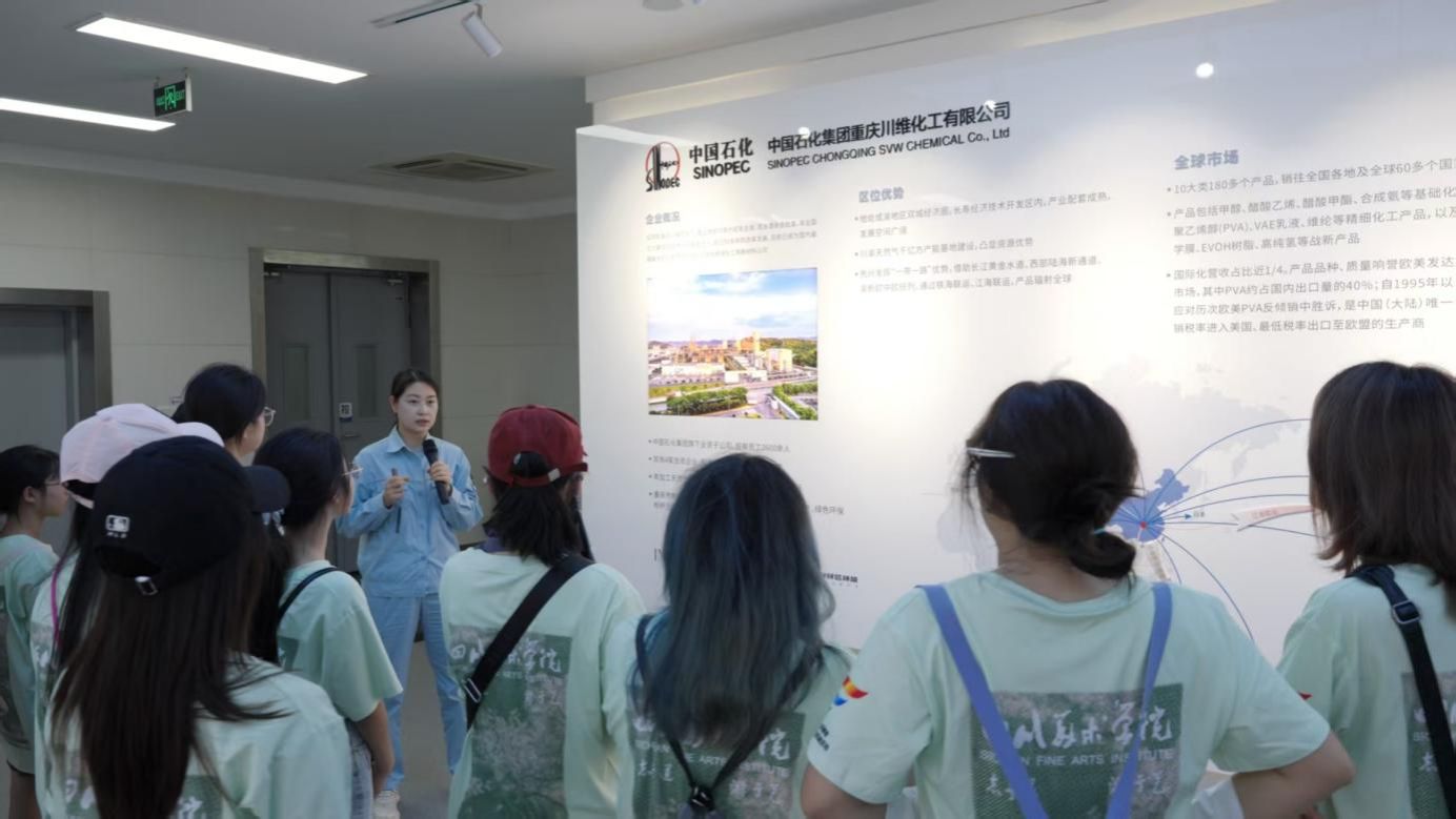 师生们走进长寿博物馆,在老物件与文字记载中梳理工业发展脉络,让这片土地的产业基因愈发清晰。在中国石化集团重庆川维化工有限公司,52年的蜕变历程与国产自动化系统的技术突破令人震撼,“爱我中华,振兴石化”的企业精神更让“三线精神”有了具象表达。重庆鑫富化工有限公司的绿色实践,则成为观察工业与环保共生的鲜活样本,成员们围绕淘汰设备的艺术改造展开热议,为承载工业记忆的“退役”设备寻找新生路径,为后续创作积累灵感。