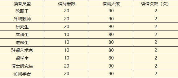 (2)读者借阅数量、期限、续借次数: