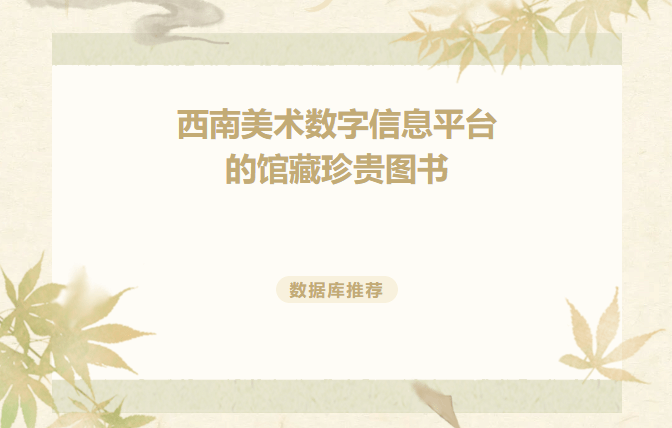 数据库推荐 | 西南美术数字信息平台的馆藏珍贵图书