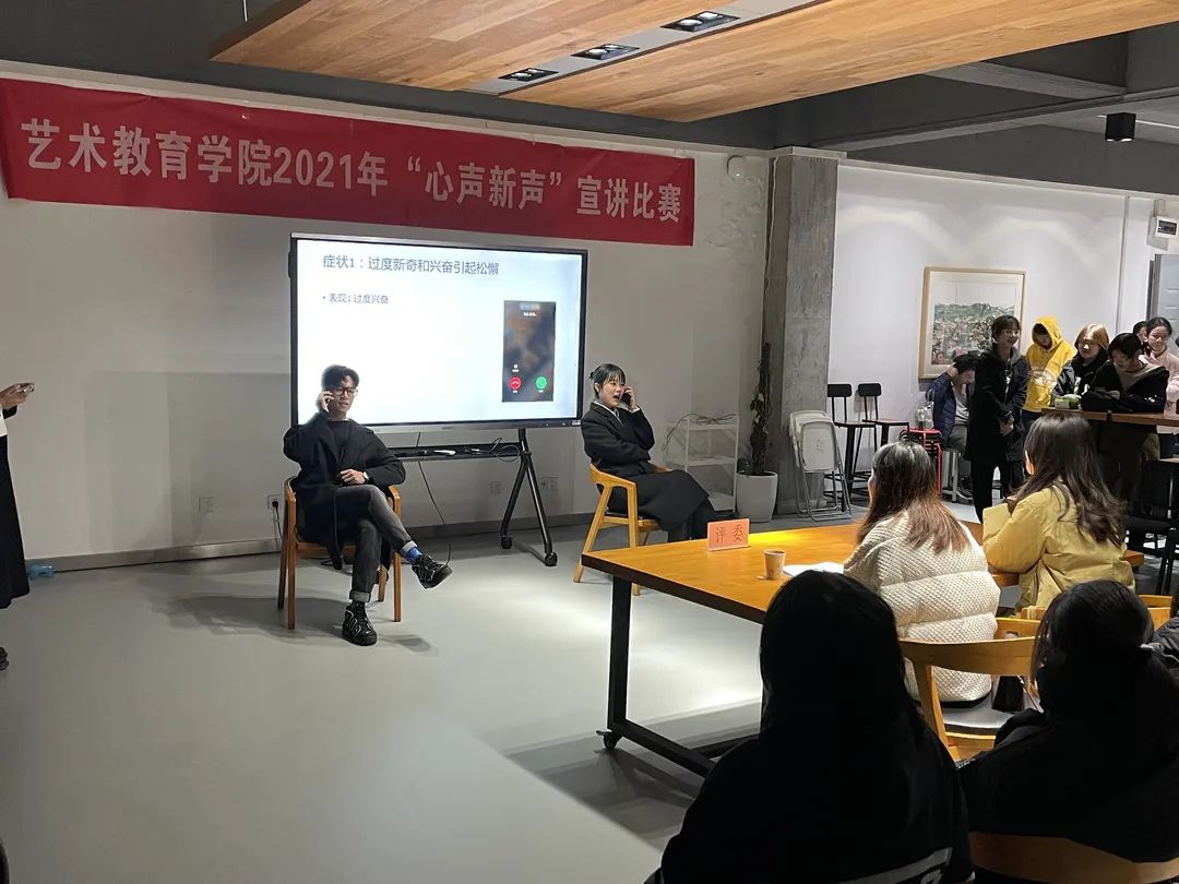 为进一步提高学生参与心理健康教育的主动性和积极性,丰富学生心理健康教育内容,创新心理健康教育形式,促进学生身心全面发展,艺术教育学院在综合楼ZB202举办了“心声新声”心理健康宣讲比赛。