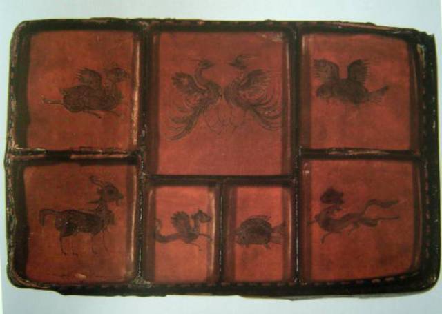 彩绘鸟兽鱼纹漆槅(gé ) 三国吴 长21.4cm 宽16.3cm 高4.8cm