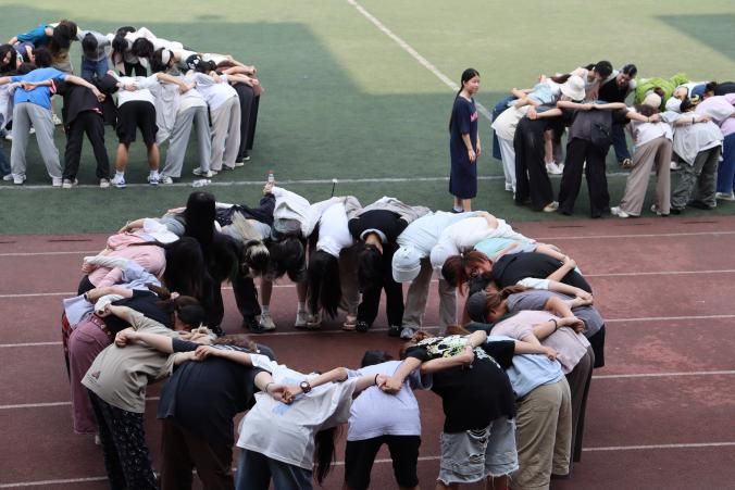 团体辅导活动主要包括“能量圈”和“花开花落”形式的放松身心“花样握手+学业成功小故事”形式的学业赋能等环节,引导同学们分享学业成功经历克服难题应对策略,同学们在活动中领悟到坚持与团结协作的重要性。活动最后,7个专业组成7列火车在操场上欢快地穿梭相遇、相知,欢声笑语回荡在操场的每一个角落。“操场火车穿行”为本次活动画上了圆满的句号。