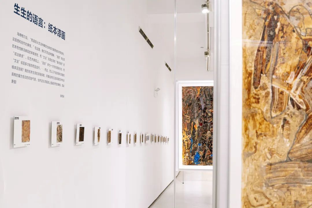 展览策展人尹丹教授表示:“本次展览两个展厅呈现了他从读大学时到今天的系列作品,从早年更为强调构图感、形式美到如今更加肆意、奔放,体现出陈恩深老师艺术之树的不断分叉。陈老师是一位对艺术极其纯粹、虔诚的人,一直以来追求着‘画在漆先’的艺术理念,并不拘泥于媒介中心主义。从逻辑上讲,他首先是一位艺术家,其次是一位画家,最后才是一名漆画家。