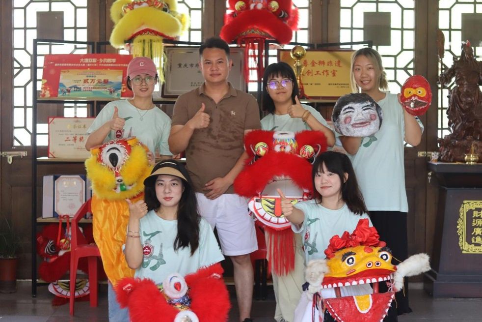 上午,团队首先走进开州博物馆,系统梳理开州从巴渝文化遗存到近代历史风云的发展脉络。团队与工作人员探讨文创设计,让文化遗产走进现代生活,同学们从展览延伸品、包装视觉到传播方式提出年轻化、生活化的思路。结束博物馆行程后,团队走进重庆市级非遗项目——向府记椒麻牛肉,团队实地了解工艺后,从包装视觉、品牌形象等方面为传统美食提出创新建议;下午,团队前往重庆市级非遗瑞兽金狮传习地。此前,团队已观摩过金狮表演,感受其独特的民俗魅力。团队聆听传承人讲述民俗技艺精髓,思考如何以设计助力非遗焕新。