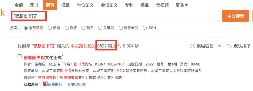 1. 以期刊频道为例,在搜索框中输入关键词,然后点击“中文搜索”,将为您在海量的期刊数据资源中进行查找。如果您希望获得外文资源,可点击“外文搜索”。