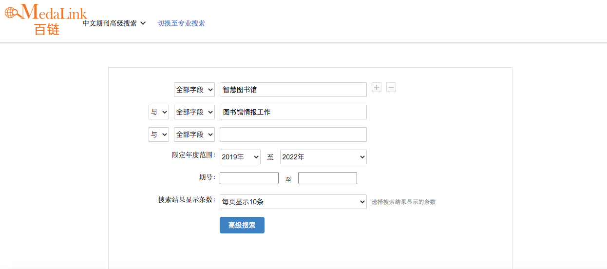 高级检索页面如下: