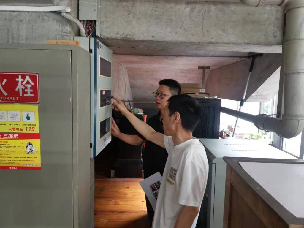 会后,屈波带队同图书馆馆务委员会其他老师们一齐对咖啡厅、艺术书库、社科书库、期刊阅览室、图书采编办公室、享智阁、会议室等区域针对馆内墙体渗漏水点、供电系统、消防安全通道、消防安全设施、视频监控系统等进行了仔细检查。