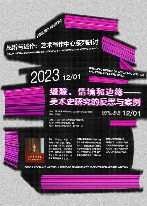 12月1日晚,“思辨与述作 艺术写作中心系列研讨”活动的第三讲“缝隙、情境和边缘:美术史研究的反思与案例”在虎溪校区逸夫图书馆举办,本次研讨活动邀请了中央美术学院人文学院党总支书记、博士生导师、艺术学骨干教师于润生作为主讲嘉宾,图书馆副馆长屈波主持,学校研究生代表参加研讨。