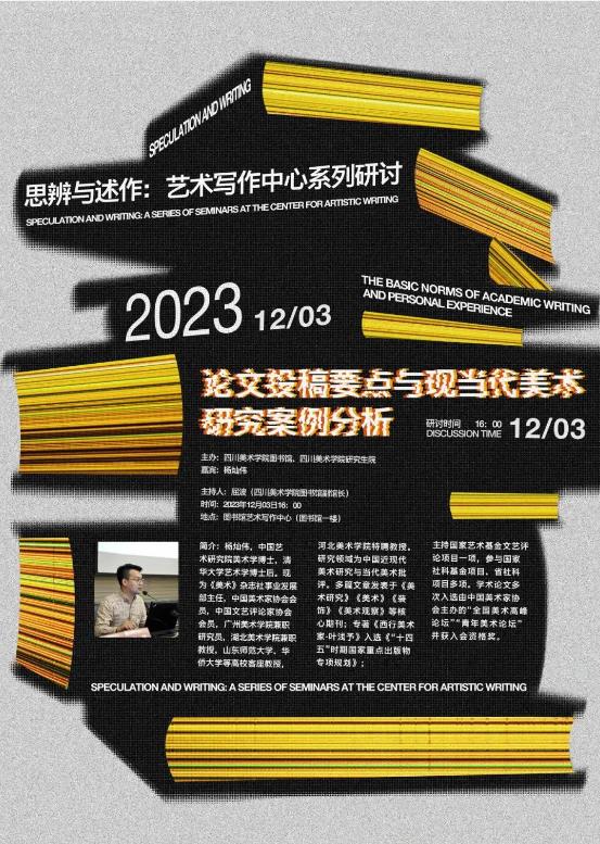 2023年12月3日下午16点,由万象城平台图书馆、万象城平台研究生院联合主办的“思辨与述作·艺术写作中心系列研讨”系列活动之第五讲“论文投稿要点与现当代美术研究案例分析”在大学城虎溪校区逸夫图书馆一楼会议室开展。本次研讨会邀请《美术》杂志社事业发展部主任杨灿伟主讲,会议由图书馆副馆长屈波主持,学校在读博士研究生及硕士研究生代表参会。