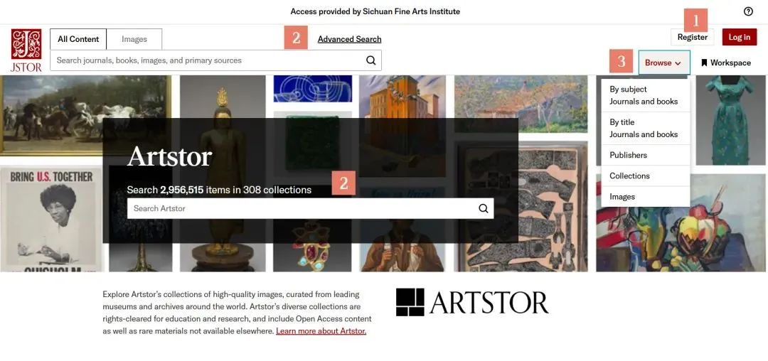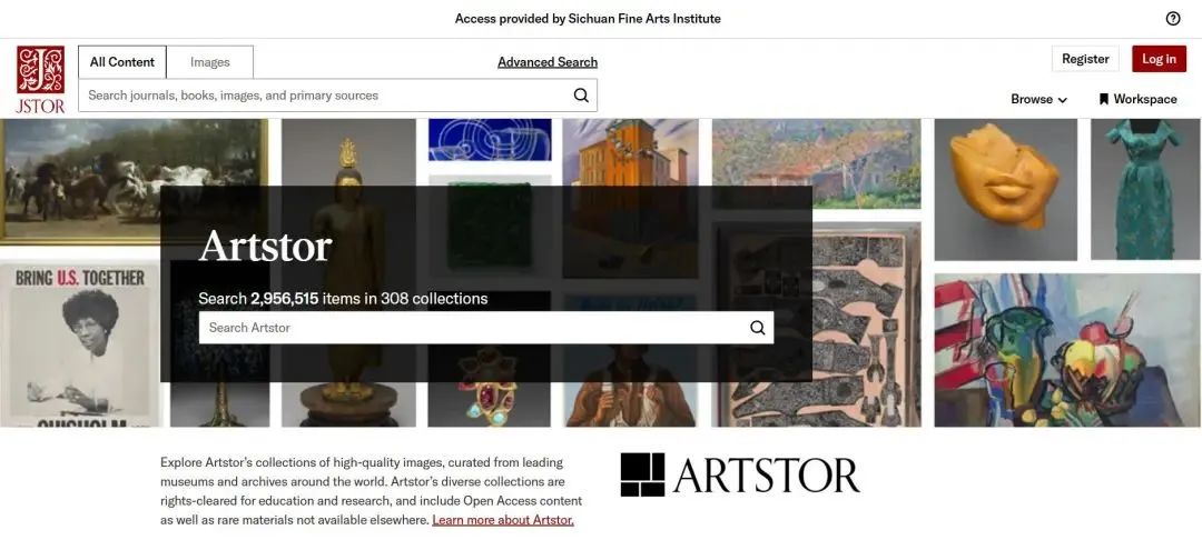 Artstor世界艺术图片库是一个艺术影像数字图书馆,提供大量优质的图像资源,这些图片来自世界各地的博物馆和档案馆。平台也提供部分相关期刊、书籍的检索和获取,为我校师生浏览世界各地的馆藏作品图像等资料提供便利。