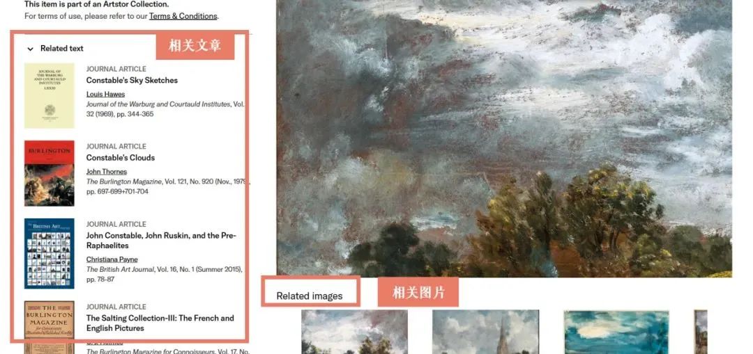 Artstor世界艺术图片库由300个精选的子馆藏组成,支持丰富跨学科研究,这些图像来自270多家一流的博物馆、档案馆、图书馆、学者和艺术家,覆盖了建筑与城市规划、装饰艺术、实用工艺品、室内设计、时尚服饰与首饰、绘画、雕塑、人文和社会科学等十多个学科门类,目前已有近300万张图像,为专业的教学和研究提供了丰富多元的图片资源。不仅如此,读者还可以放大图像以探索细节、并排比较和对比图像,以及创建带有嵌入文本和注释的演示文稿。此外,这些图像附详细著录,包括题名、作者、作品类型、时间、描述等信息,便于大家获取真实可靠的相关信息。