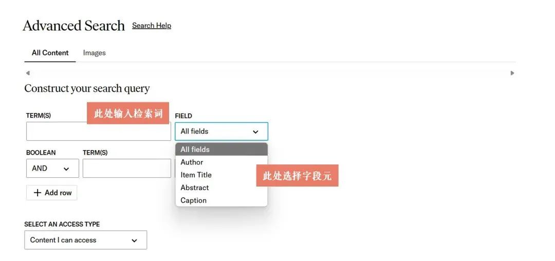 高级检索功能可点击首页最上“Advanced Search”进入。选择检索字段元(创作者、作品名、主题或材质…)可以更加精准搜索到想要的结果。同时支持设定出版日期区间、地理区域和项目类型等进行检索,以进一步缩小结果范围。
