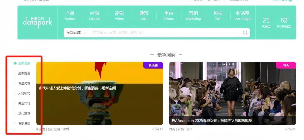 库内包含趋势报告、图表数据、品牌案例、大师演讲视频等资源,从趋势、商业、消费、设计、产品等维度解析各领域的全球动态,帮助用户第一时间了解全球创新与商业变化,为日常设计学习、设计项目、就业创业规划、科研教学提供素材。