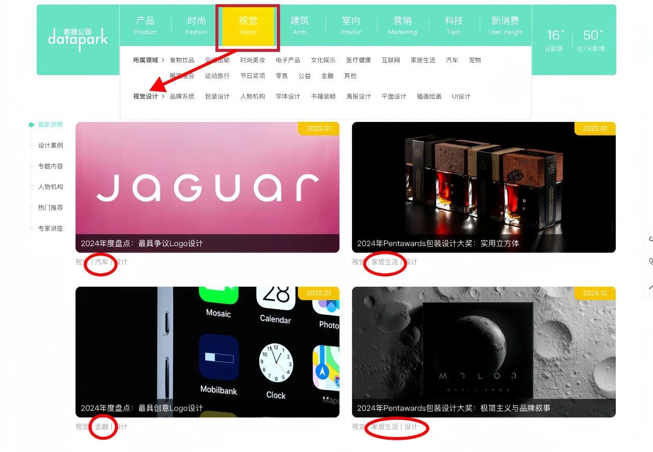 数据库顶部和左侧有各领域的细分标签,可根据需求进行分类浏览。