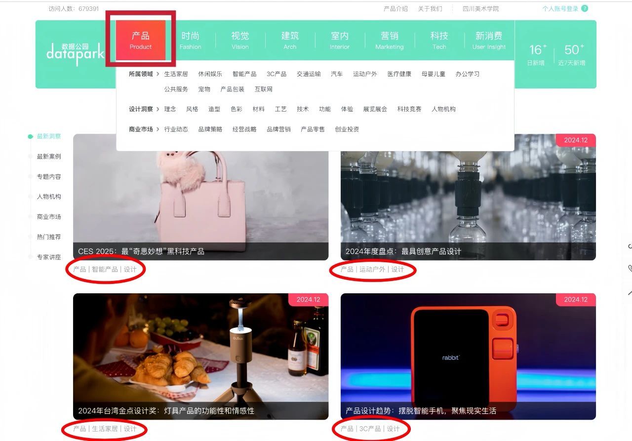 基于大数据后台,产品板块每天更新全球最新的智能产品、3C、家电、宠物、家居、交通工具等领域的最新设计案例、创新趋势、新兴品牌与设计师,为用户在设计作业与项目实践中提供前沿信息与素材。