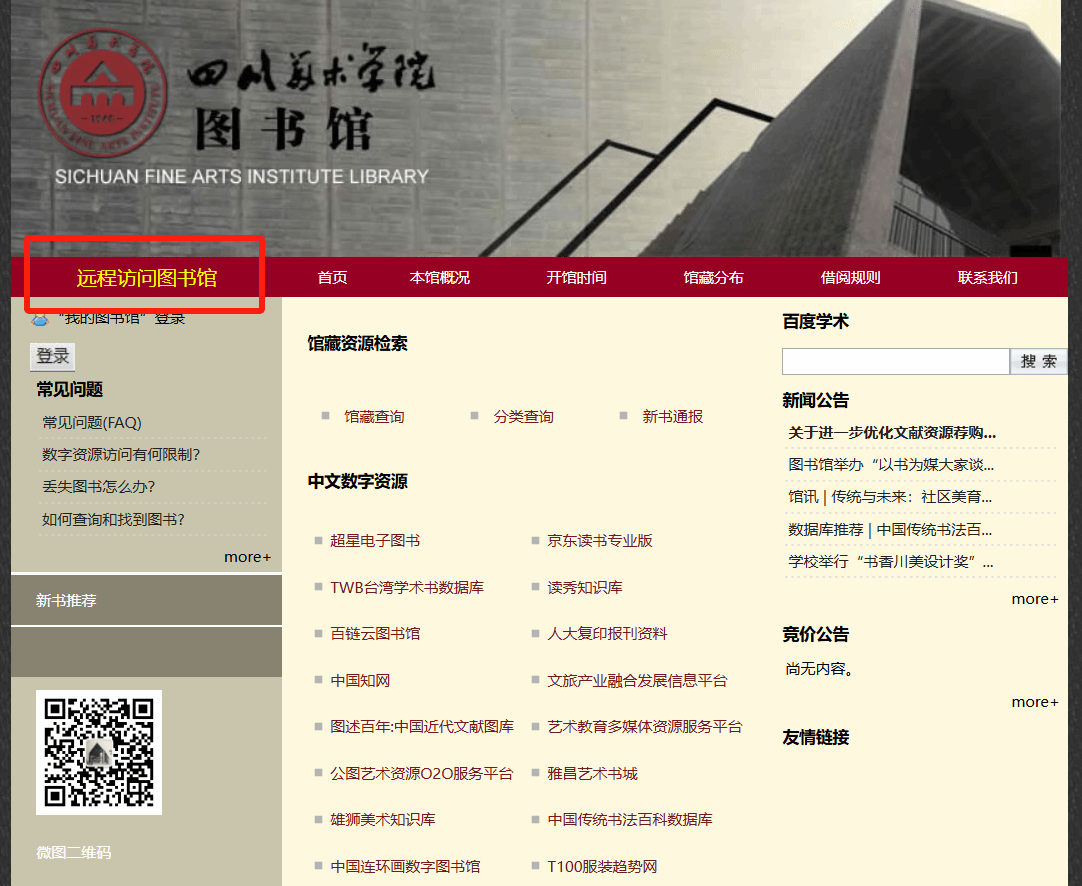 二、远程访问服务系统(VPN) https://webvpn.scfai.edu.cn/frontend_static/frontend/login/index.html#/ 通过统一身份认证登录后,即可访问图书馆数字资源。