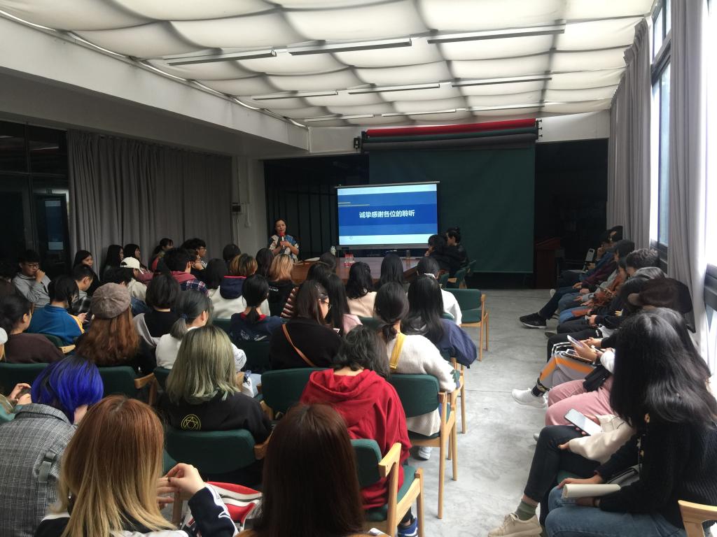 会议邀请了获得全额奖学金的同学杨璞赖馨介绍自己的获奖经历和心得体会。杨璞赖馨同学是2015级新媒体艺术专业学生,是 2016/2017学年、2017/2018学年的国家奖学金获得者,也是2017/2018学年的全额奖学金获得者。她不仅成绩优秀,而且积极参加各种学术和实践活动,如国家艺术基金活动、“创意市集”社会实践活动等,是一位综合素质好、全面发展的优秀学生。杨璞赖馨向学弟学妹们介绍了如何进行更好的专业学习、专业创作以及找到适合自己的学习方法、积累创作素材的方法,并以自己亲身经历向大家介绍了全额奖学金竞选的体会和注意事项。会后与学弟学妹们进行了深入交流。