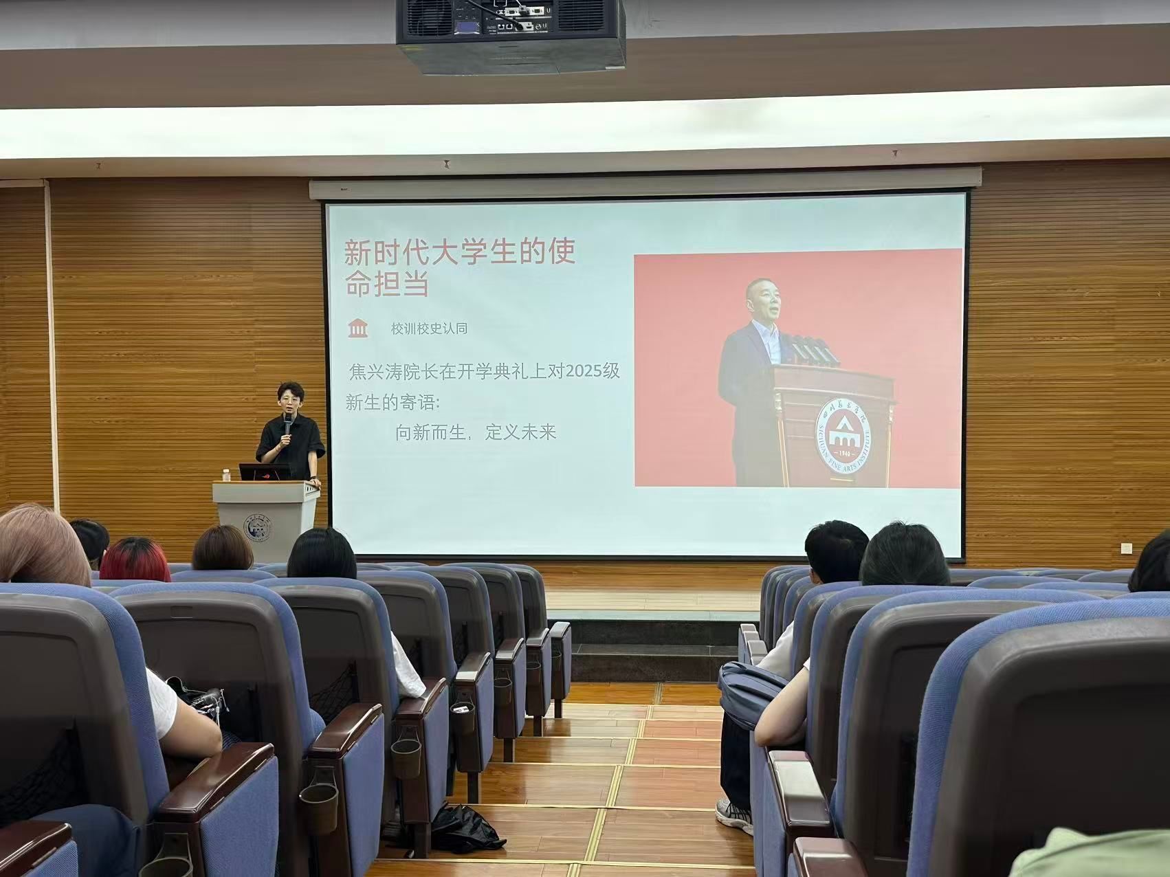 其中,中国画与书法艺术学院从历史与现实、使命与责任等多个维度出发,引导学生树立远大目标,增强时代责任感,实现从外在要求到内在驱动的转变。公共艺术学院围绕“新时代大学生的使命担当”等主题,引导新生凝聚价值认同,通过“价值认同—规则内化—学业导航”三步推进,强化课堂纪律与行为规范教育,为新生大学学习生活奠定坚实基础。实验艺术学院通过解读焦兴涛院长寄语中的案例与观点,将讲话精神转化为具体可行的成长指引。同学们纷纷表示,将以“向新而生”的姿态规划大学生活,用专业学习践行“定义未来”的使命担当。学校和电子科技大学“艺术+电子信息技术”联合学士学位培养项目学生杨思琪谈到,焦兴涛院长关于“热爱是艺术之路核心驱动力”的论述,让自己深受触动,未来四年将以“见贤思齐”的态度深耕“艺术+电子信息技术”融合,在跨界挑战中突破自我。
