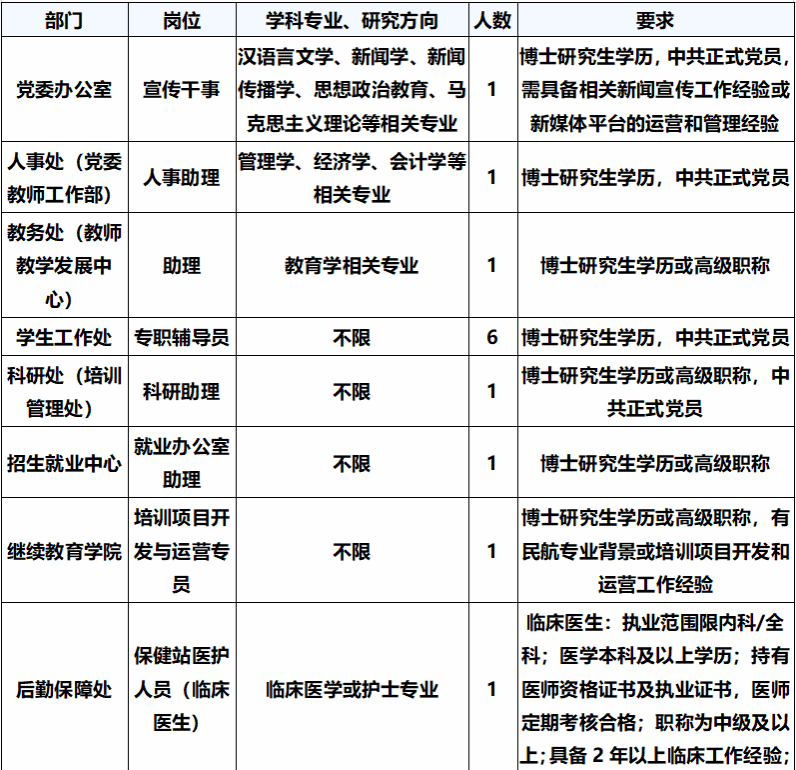为进一步深化干部人事制度改革,拓宽选人用人视野,根据国家及民航局关于事业单位公开招聘人员的相关规定,按照公开、平等、竞争、择优的原则,面向社会公开招聘教职员工34名,现将相关事项公告如下。