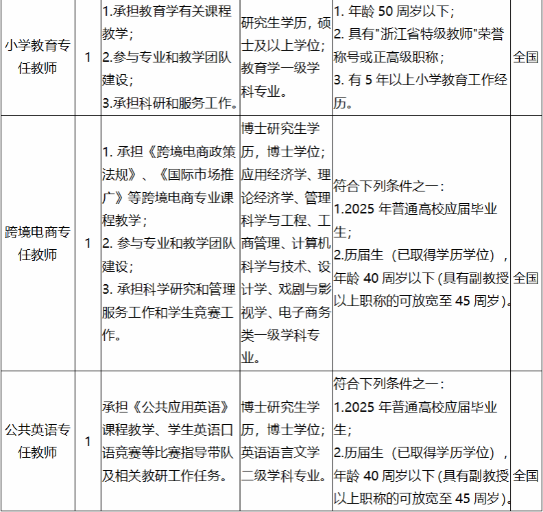 3、教师教育教师岗位的工作地点在宁波校区,其余岗位工作地点均在杭州湾校区。