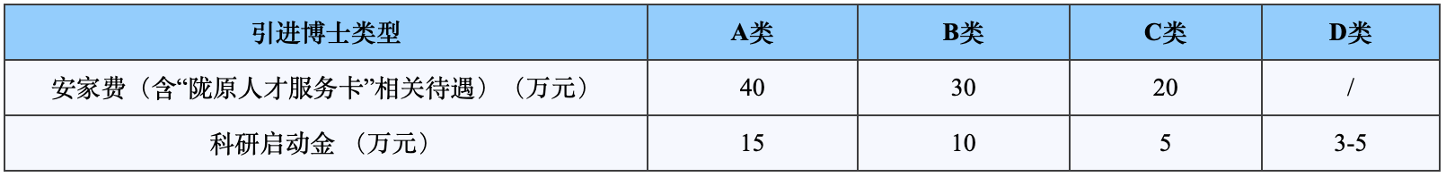 1.根据《兰州文理学院优秀博士研究生引进管理办法》,引进优秀博士人才分为四类,具体待遇如下: