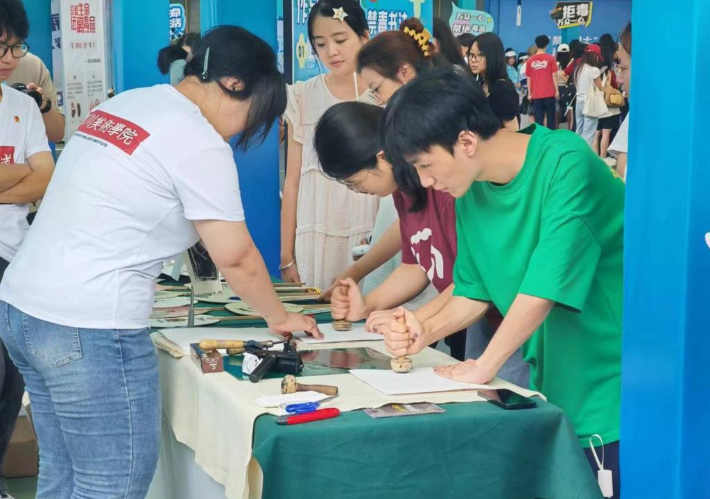 在展览现场我校书法、国画、版画专业学生积极开展禁毒标语书写、版画印制等互动体验活动,其间穿插禁毒小知识问答,进一步提升大学生群体识毒防毒拒毒意识和能力。现场互动热烈,吸引了大批师生参与,广受好评。