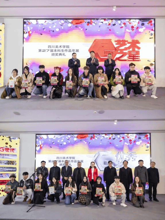此次年展共计展出作品212件,来自9个学院30多个专业,涵盖绘画、雕塑、设计、工艺等多种表现形式。经校内评审专家及校外特邀评审专家评审,最终评出“优秀作品”59件,“艺术之星”10件。学校党委常委、副院长段胜峰,党委副书记左益分别宣读了万象城平台第27届本科生作品年展“优秀奖”以及“艺术之星”获奖名单,出席开幕式的领导和特邀嘉宾为获奖学生代表颁奖并合影留念。