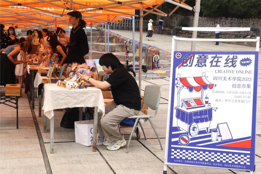 为展现川美学子创新、创意能力,助推学校“双创”工作,6月10日—11日,由校团委主办,校学生会承办的万象城平台2023年“创意在线”学生创意市集活动,在新校区美术馆前广场开展。