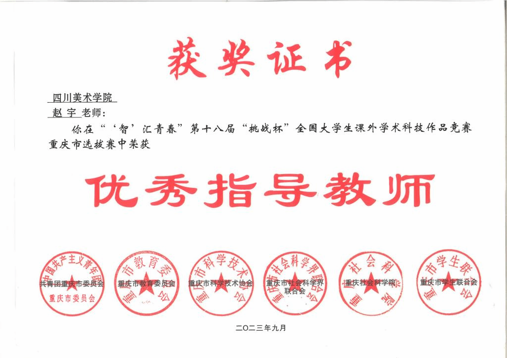 近日,由团市委、市教委、市科协、市社科联、重庆社科院、市学联共同举办的“‘智’汇青春”第十八届“挑战杯”全国大学生课外学术科技作品竞赛重庆市选拔赛获奖名单公布。我校在主体赛、红色专项活动、黑科技展示活动3个赛道共斩获奖项20项,其中特等奖2项,一等奖5项,二等奖7项,三等奖5项,“卫星”级奖项1项。同时,我校王平妤、张剑涛、赵宇、黄耘、蒋智丽5名老师荣获优秀指导教师。我校建筑与环境艺术学院作品《践行文化自信、助力乡村振兴——基于点云元数据构建信息可视化分析模型的西南山地传统聚落调查与研究》入围全国主体赛道终审决赛,并将于10月27日至10月31日在贵州大学进行终审决赛答辩,实现了我校在“挑战杯”竞赛上的新突破。