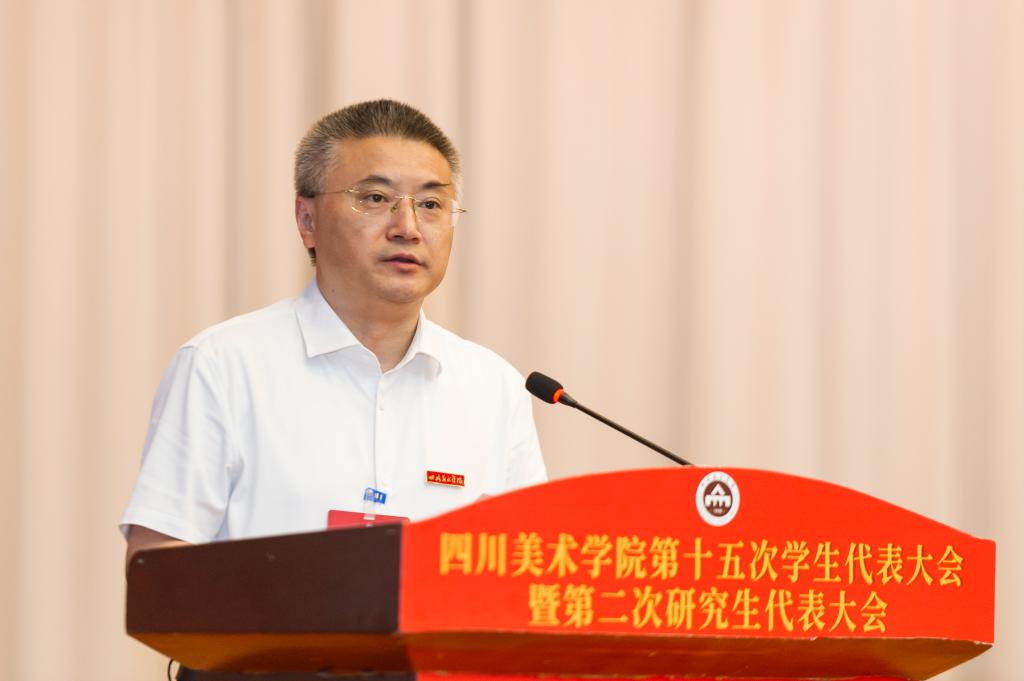 闭幕会上,副校长段胜峰发表讲话,他首先代表学校党委向当选的新一届校学生会、校研究生会主席团成员表示热烈祝贺,并就如何落实本次大会精神做出强调:学校党政十分重视、非常关心此次会议,各级学生会、研究生会要认真贯彻落实本次大会会议精神,贯彻落实学校党委书记唐青阳的讲话精神。对于学生会、研究生会未来的工作,他提出了三点要求:一是聚焦思想政治引领,以实现中华民族伟大复兴为己任;二是着力塑造清新形象,提升同学满意度;三是围绕党政中心工作,助推学校发展。他希望各级学生会、研究生会组织要充分发挥学生会、研究生会作用,起到上传下达、下情上报、互联互通的作用。最后他希望,同学们以本次会议为契机,在学校党委领导下,在校团委的具体指导下,深化学生会、研究生会改革,积极带领全体学生青春建功,为把学校建设成为国内一流、国际知名的美术学院而努力奋斗!最后,大会在全体与会代表整齐嘹亮的掌声中胜利闭幕。