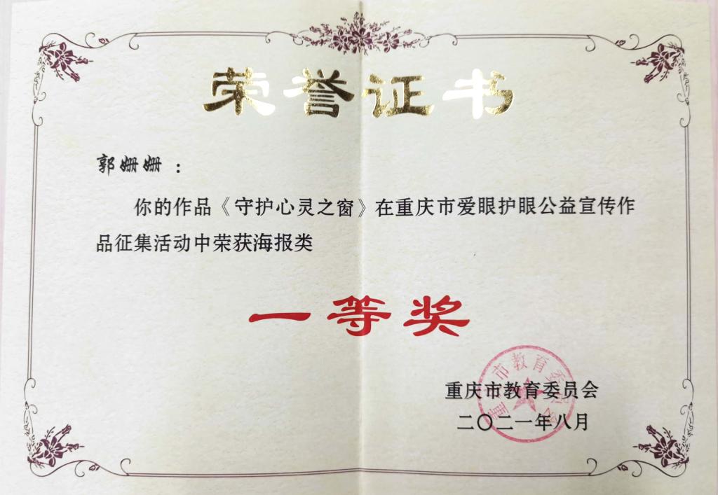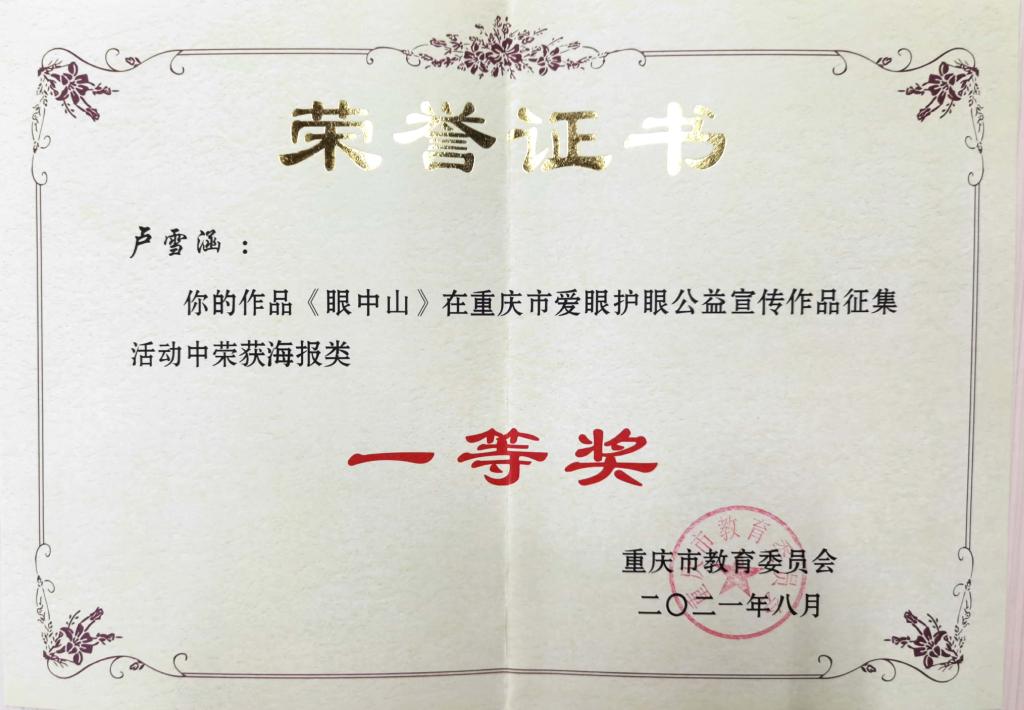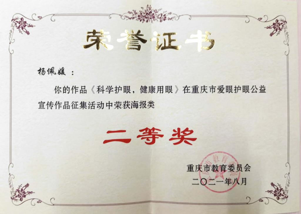 为深入贯彻习近平总书记关于儿童青少年近视问题的重要指示精神,全面落实《重庆市综合防控儿童青少年近视实施方案》,进一步营造近视防控宣传教育氛围,市教委根据2021年“爱眼月”系列宣传活动总体安排,开展了爱眼护眼公益宣传作品征集活动,我校积极组织师生参与。