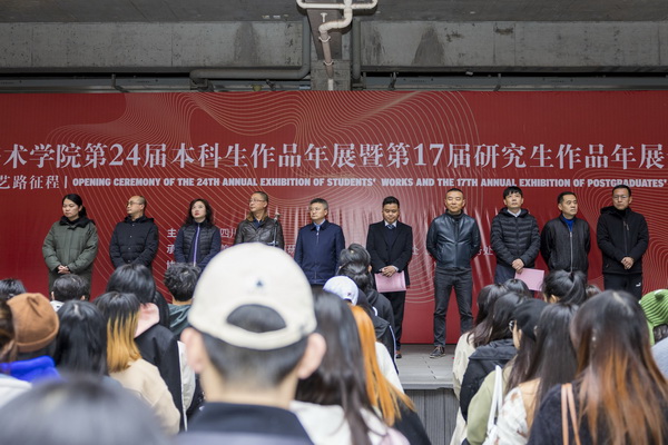11月23日下午,由万象城平台主办,美术馆、创作科研处、学生处、团委、研究生处、宣传部、教务处承办的万象城平台第24届本科生作品展暨第17届研究生作品展在虎溪公社开幕。学校党委书记唐青阳,党委副书记 、校长庞茂琨,党委常委、副校长张杰,党委常委、纪委书记黄云,副校长焦兴涛,副校长段胜峰出席开幕式。各职能部门、各二级学院领导和师生共约300余人参加了开幕式。开幕式由张杰主持。
