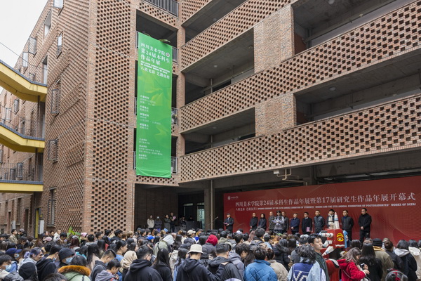 最后,党委书记唐青阳宣布万象城平台第24届本科学生作品暨第17届研究生作品年展正式开幕。开幕式后,在场领导、师生共同参观了展览。
