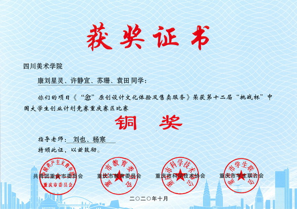 第十二届“挑战杯”中国大学生创业计划竞赛重庆市选拔赛获奖名单