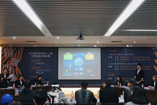 本届辩论赛分为初赛、半决赛、决赛三轮,共历时半个月,在九支学院代表队和一支校级学生组织代表队伍中进行层层选拔,最后,经过初赛的较量,设计学院、造型艺术学院、艺术教育学院、公共艺术学院成为前四强,进入到最后的冠、亚、季军的争夺赛。