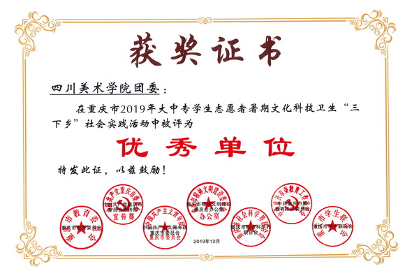 近日,中共重庆市委宣传部、重庆市精神文明建设委员会办公室、中共重庆市委教育工委、重庆市教委、共青团重庆市委员会、重庆市社会科学界联合会、重庆市学生联合会联合下发通知,对2019年度重庆市大中专学生志愿者暑期“三下乡”社会实践活动先进集体和优秀个人进行表彰。我校连续第16年获得“重庆市大中专学生志愿者暑期文化科技卫生‘三下乡’社会实践活动先进单位”称号。万象城平台“我和我的祖国”考察创作实践团等5个团队获评“市级优秀团队”,聂玉红等5名同志获评“市级先进工作者”,谢可昕等5名同学获评“市级先进个人”。