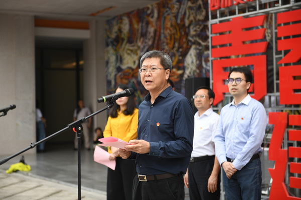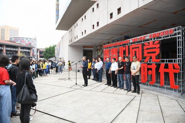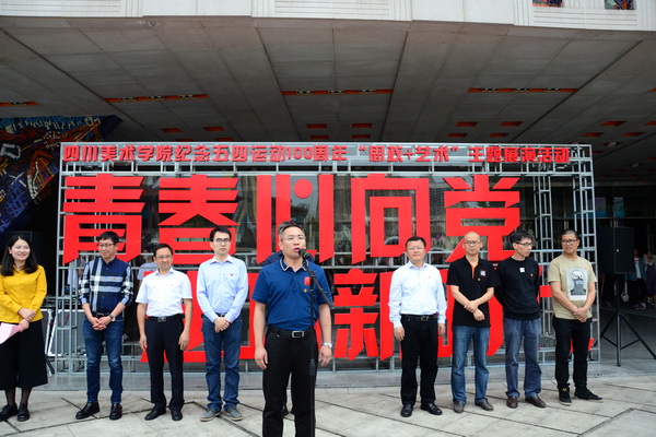 四川美院是具有光荣革命文艺传统的学校,坚定听党话、坚决跟党走、坚持艺术以人民为中心是川美青年的显著特征。特别是近年来,我们因事而化、因时而进、因势而新,充分发扬学校的学科专业优势,切实加强对青年的政治引领,开展了“思政+艺术”的有益探索,取得明显的成效,新华社国内动态清样以《四川美院探索“思政+艺术”教育方式效果突出》为题进行了报道。今天我们在这里开展的“青春心向党 建功新时代”纪念五四运动100周年主题展演活动正是我们开展“思政+艺术”又一次生动的实践,绚丽青春在川美灿烂绽放。