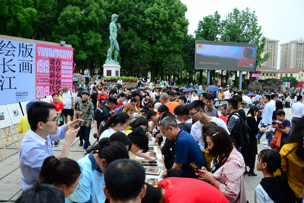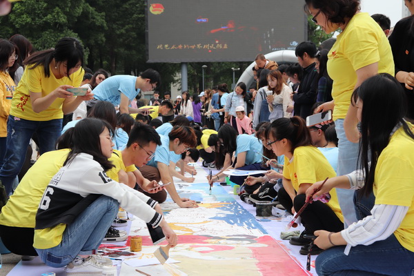 开幕式结束后,在场领导嘉宾一同观看了“思政+艺术”主题展演活动,并参与相关活动体验。展演活动分为4个版块。“青春心向党 版画绘长江”主题版画创作展览板块以习近平总书记视察重庆重要讲话精神,习近平总书记在五四运动100周年大会上重要讲话精神等为主题进行黑白木刻版画创作,并给广大群众提供印制版画的现场体验;“青春心向党 川美创意浓”川美创意市集板块荟萃了川美本土的创意力量,在川美这样一个厚植创业土壤的校园里,给青年创新创业划下第一道起跑线,是众多才华横溢的原创艺术家与设计师的事业起点;“青春心向党 五四百米绘”百米长卷绘板块全校各院系的优秀团员青年代表参与,在创作中回顾历史,品味历史,学习历史,画笔激昂青春志,奋斗成就少年梦;“青春心向党 颂歌献祖国”川美青年学子快闪唱团歌板块,广场前的大屏幕上播放的视频中摄录了川美怡人的校园景色,川美的油菜花海契合了“我们是五月的花海”这句歌词等;我们用“思政+艺术”这样的探索,展现川美青年立足中国土地,淬炼着自己的艺术、情操、胸怀,用独具川美特色的方式体现五四精神和时代精神。
