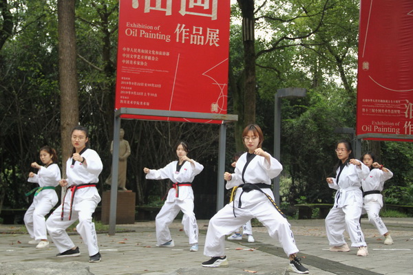我校现有各类学生社团共计46个,包括专业类、文体类和兴趣类三大类的社团。开幕式上,各社团纷纷拿出“看家绝活”,以独特方式展示社团风采。街舞社舞蹈尽展青春风采与活力;华服雅轩汉服社带我们漫游在上下五千年的历史长河中,在了解中国的历史礼仪文化的同时感受国风独具的魅力;托亚动漫社带着精致的妆容向我们走来,为我们呈现了一场视觉的盛宴;EO动漫社的舞蹈同样活力四射;与此同时,在一片片破裂的木板后,是跆拳道社的成员们为我们展现出的如虹气势的跆拳道表演。现场更有军迷社的成员全副武装给予同学们真实般的军旅体验;书法篆刻社现场展示书法笔酣墨饱,流水行云……各种精彩的表演吸引了众多同学的驻足欣赏,也为社团招新的现场带来了欢声笑语,积攒了人气。