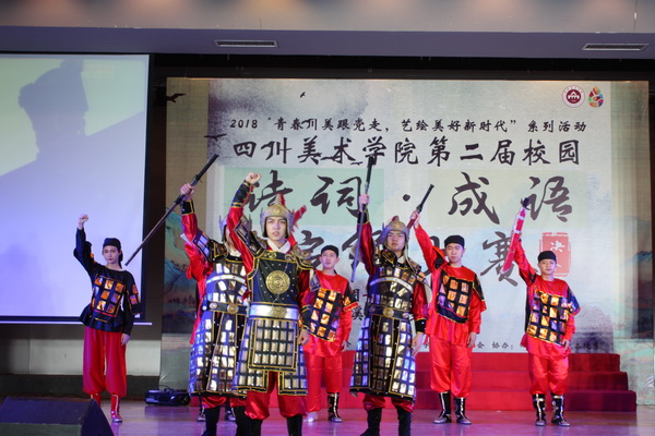 雕塑系同学们表演的话剧《满江红》将全场气氛带到高潮。“壮志饥餐胡虏肉, 笑谈渴饮匈奴血。 待从头、 收拾旧山河, 朝天阙。”比赛现场活泼热烈,各院系静心编排的诗词演绎节目,将诗词的文学性与艺术性完美再现,给现场观众奉献了一场文化、艺术与视听盛宴。场外观众答题环节,也为比赛增添了更多的互动性与参与性。