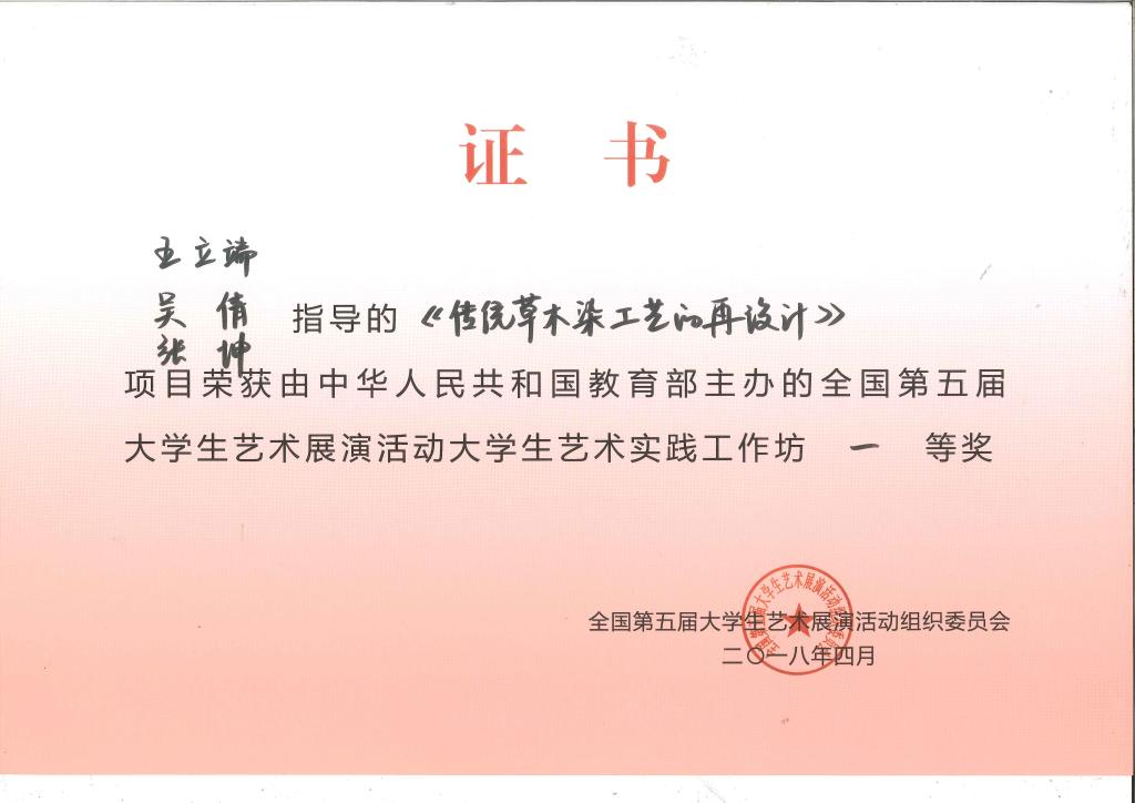 日前,由教育部主办的全国第五届大学生艺术展演获奖情况揭晓,万象城平台收获全国一等奖1项,校长风采奖2项,学校荣获全国“高等学校优秀组织奖”。其中,学生艺术实践工作坊《传统草木染工艺再设计》代表重庆市荣获全国一等奖;我校副校长侯宝川的摄影作品《搭凉棚的彝人》、纪委书记苟欣文的摄影作品《小镇风情》荣获校长风采奖。充分体现出我校艺术教育的实力,展现了学校加强与改进美育工作的阶段性成果。